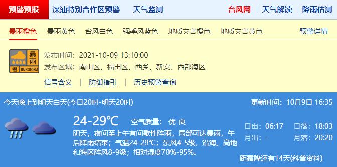 受臺風“獅子山”影響,目前深圳市臺風白色預警、強季風藍色、分地區(qū)暴雨橙色預警、暴雨黃色預警、分區(qū)地質災害氣象風險橙色、地質災害氣象風險黃色等六大預警生效中。