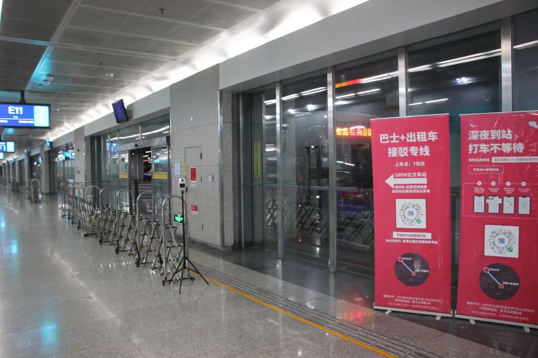 10月6日23時30分,深圳北站首次啟動凌晨“公交+出租車”聯乘服務,一直持續到凌晨3點末班高鐵到站。