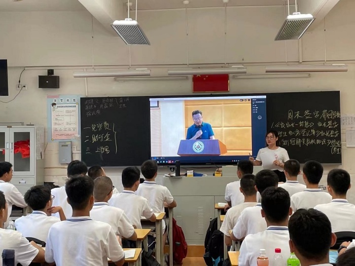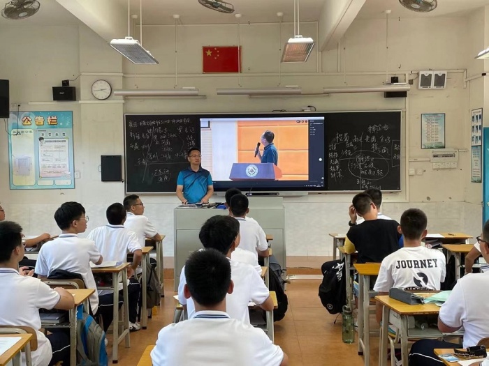 他以中山籍奧運健兒蘇炳添在東京奧運賽場上頑強拼搏為國爭光談起,激發青年學生對民族的自豪感和榮譽感。繼而他拋磚引玉地提出問題:“同學們對責任與擔當的看法是什么?”“作為新時代的青年,你們的時代擔當是什么?”事例催人奮進,問題發人深省。