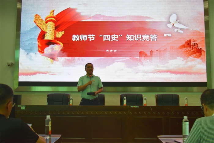 隨后,黨建辦公室胡忠林主任組織全體教師進行教師節“四史”知識競答,用這種有意義、有趣味的方式來慶祝教師的節日。老師們踴躍積極,競相打卡答題,全場氣氛緊張而又熱烈。