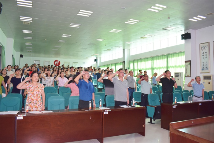 最后,程少輝校長帶領全體教師進行莊嚴的師德師風宣誓以及簽訂師德承諾書。全體教師鄭重承諾,將忠誠人民教育事業,依法履行教師職責,肩負教育重任,不負神圣使命,為建成“人民滿意、企業認可、家長放心、師生奮進”的暖心、活力、進取、幸福的中山市火炬科學技術學校,貢獻自己的智慧和力量。