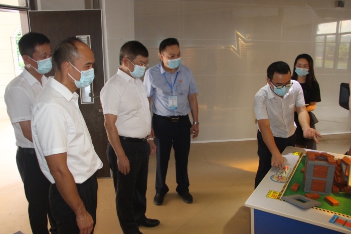 學校校長董再明,副校長嚴小堅、陳福生、盧潔貞等班子成員熱情接待了慰問領導,感謝市鎮兩級領導對桂山中學的關心與支持。學校班子成員陪同馮煜榮一行饒有興趣地參觀了桂山中學的地震科普中心,一同體驗了現場“模擬地震”;了解了桂山中學國家地震烈度速報和預警發布終端設備的運行模式,詢問了最近地震的測報數據。馮煜榮非常關心學校的發展,仔細詢問了教學質量、德育管理、師生發展等情況,希望桂山中學發揮市直屬學校、重點高中的領航作用,為中山市提供更好的優質教育。