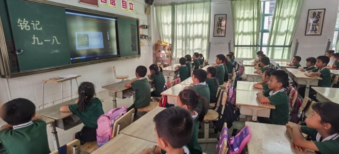 接著,黃文燦副校長開展了主題為《銘記九一八 勿忘血淚 勿忘國恥》的思政課,向全體同學詳細講述了“九一八”事變全過程以及中華民族共同抗戰的偉大精神,激發少先隊員的愛國主義精神。這節思政課讓同學們明白作為新時代的小學生,應該了解和銘記歷史,努力學習,奮發向上,自立自強。要從我做起,從小事做起,做一個講文明、講禮儀、講誠信、遵紀守法的新時代好少年,將來用自己堅實的臂膀擔負起建設祖國的重任。